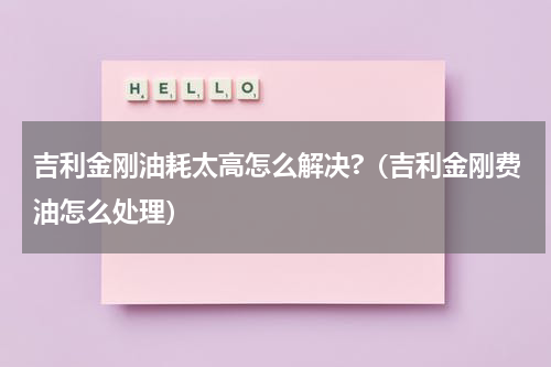 要解决吉利金刚的油耗问题,可以尝试以下几种方法: